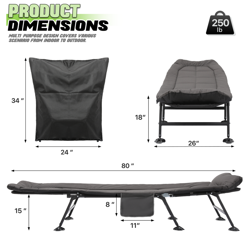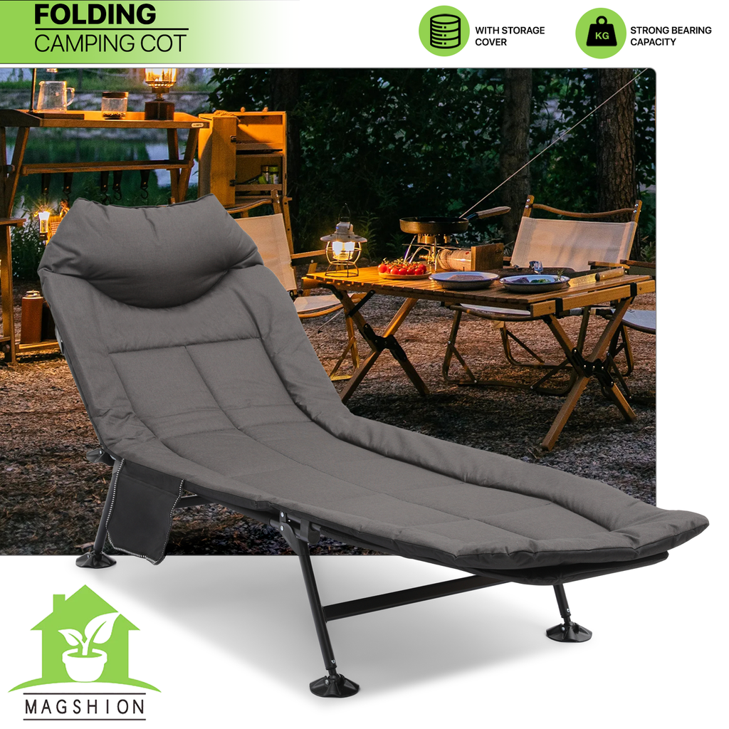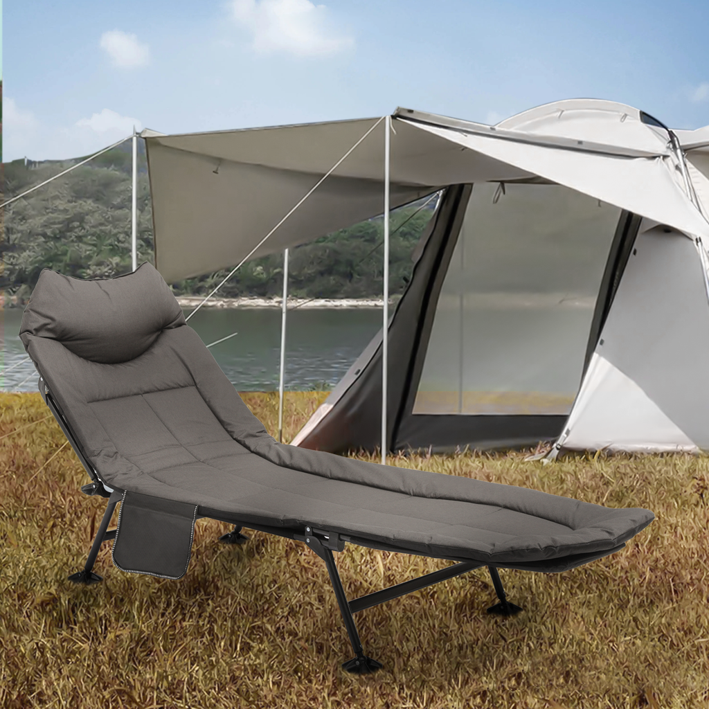 Enjoy a comfortable night's sleep even when you're away from home with our camping cot with mattress. The included mattress provides exceptional comfort and support, ensuring you wake up refreshed and ready for your outdoor adventures. Crafted with sturdy and durable materials, this camping cot is built to withstand the rigors of the outdoors, providing you with a reliable and comfortable sleeping spot. Its portable and foldable design allows for easy transportation and quick setup, making it the perfect choice for camping trips, backyard lounging, or accommodating overnight guests.