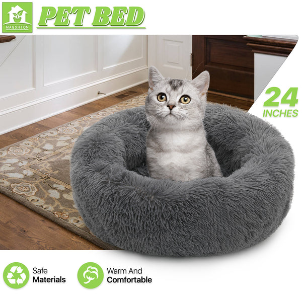 • Pet Bed - Round - 24'' Diameter - Long Plush - Machine Washable