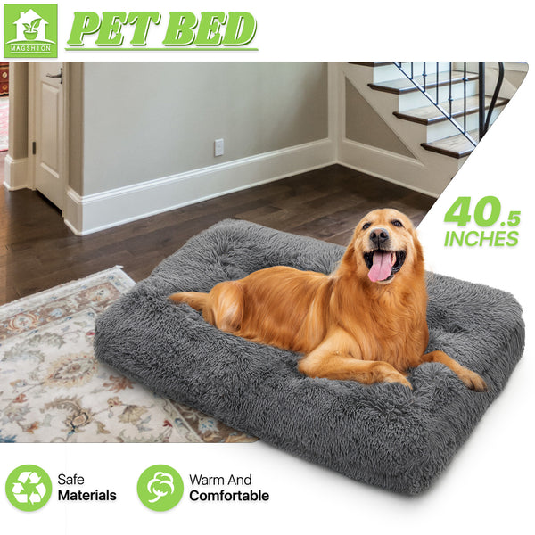 • Pet Bed - Rectangle - 40.5'' Length - Long Plush - Machine Washable