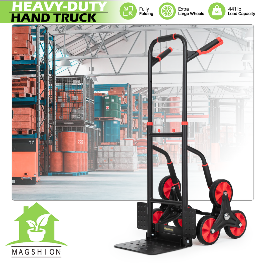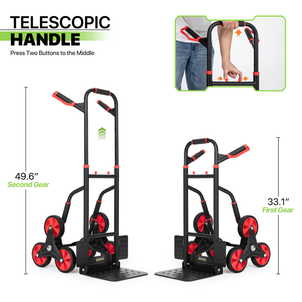 A portable hand truck is an upright 鈥淟éˆ?shaped handcart with 6 climbing wheels, made of sturdy high carbon steel, a telescoping handle at one end and a small flat ledge at the bottom that allows you to set objects on. A folding hand truck is a more recent innovation of a hand truck; the only key difference between the two is that when the truck is not in use you can fold up the toe plate and the wheels to reduce space. This is great to keep on a work van or truck that is generally full with inventory because it can be folded flat and not take up a lot of precious space on the vehicle. It can be used as a stair climbing cart to save effort when moving up and down stairs or served as cargo cart for industrial applications.