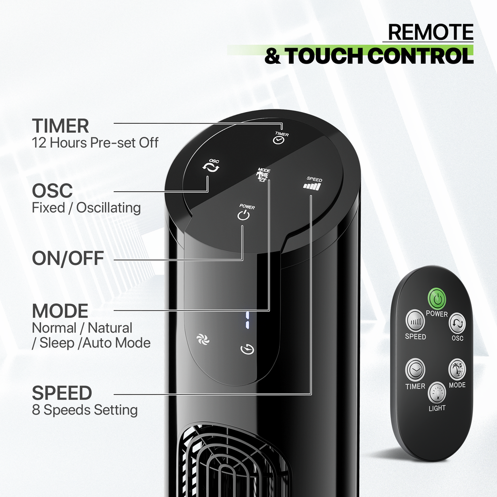 45" Tower fan 8 Speed - LED Bottom Night Light