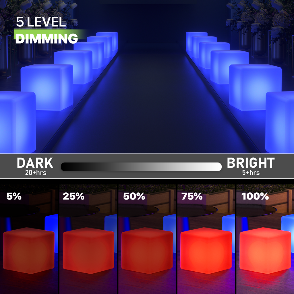 This LED atmosphere light chair creates the perfect lighting for your home, party or wedding, with rechargeable batteries inside for indoor and outdoor use. Whether it's to keep your room illuminated all night long or to decorate your house or garden. 16 kinds of bright colors, just press the button on the universal remote control to watch the color change and flash. Or keep your favorite color static and make it fit any room.