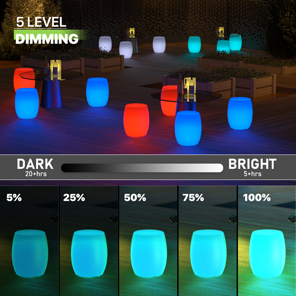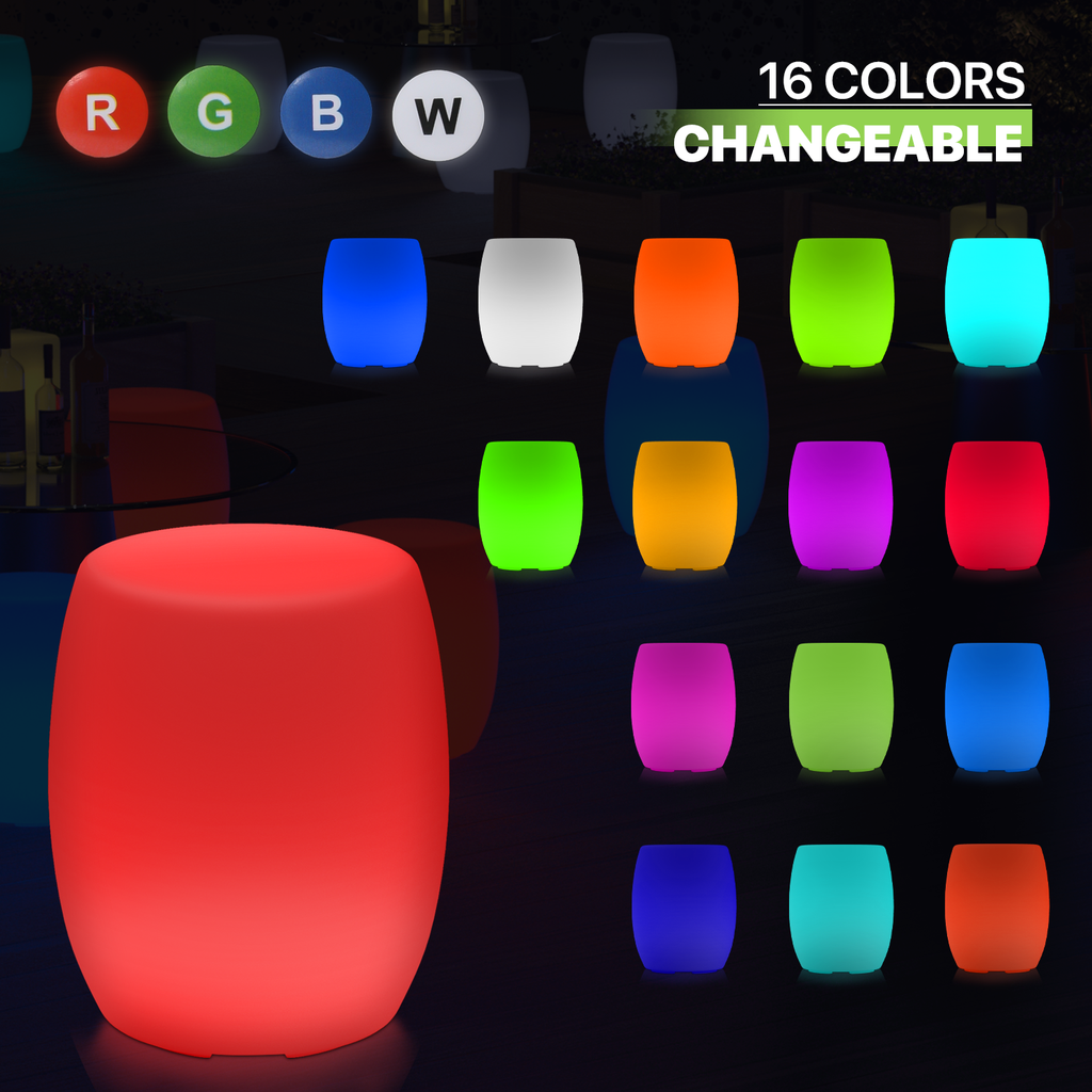 This LED atmosphere light chair creates the perfect lighting for your home, party or wedding, with rechargeable batteries inside for indoor and outdoor use. Whether it's to keep your room illuminated all night long or to decorate your house or garden. 16 kinds of bright colors, just press the button on the universal remote control to watch the color change and flash. Or keep your favorite color static and make it fit any room.